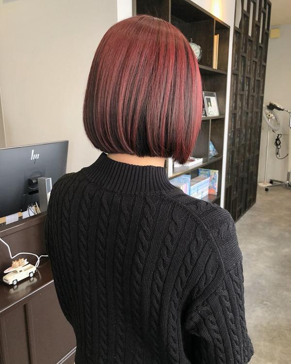 - コントラストカラー×切りっぱなしボブ