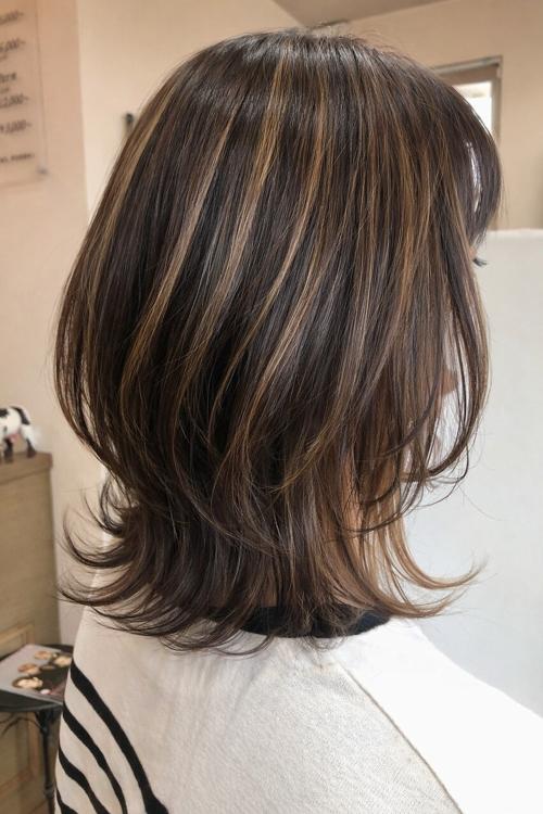 - ミディアムボブ×ハイライトカラー