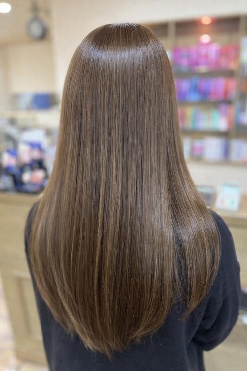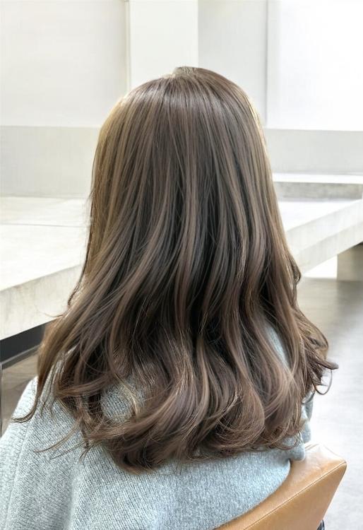 - 髪質改善/オイルカラー/オリーブグレージュ/ロング/艶カラー