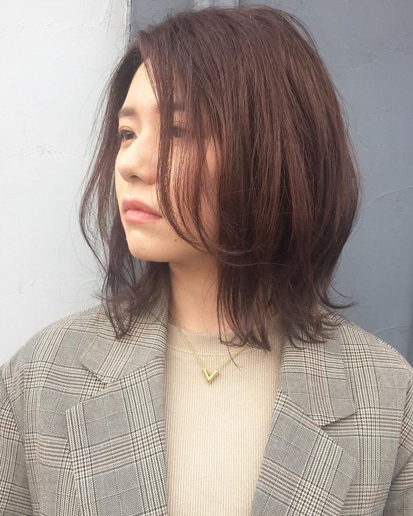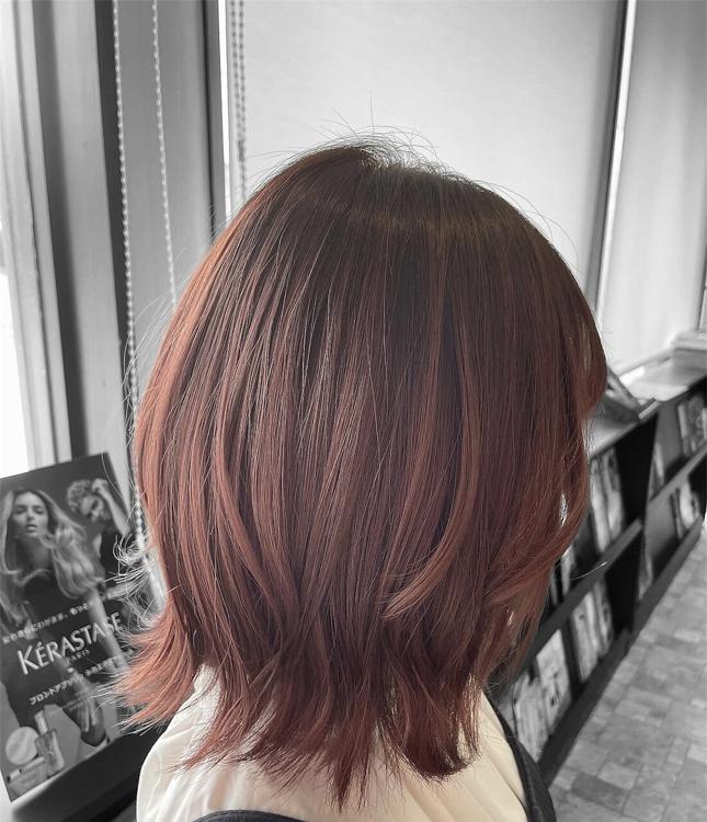 - ピンクブラウン/艶カラー/チェリーブラウン/ミディアム/レイヤー