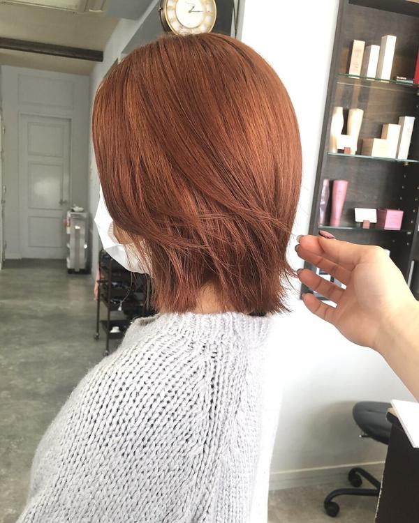 - 【GRAN HAIR 神居店】オレンジベージュ×外ハネセミディ