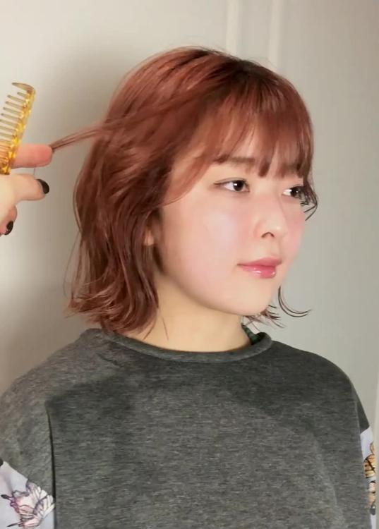 - #ピンクベージュ#オイルカラー#外はね#ボブウルフ
