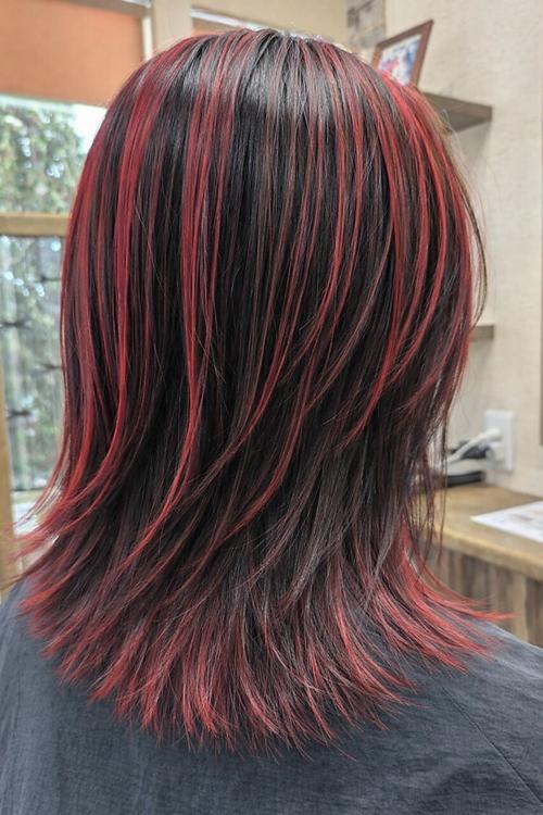 - #レイヤー#ウルフカット#水光肌カラー#Violet#Red#ミディアム