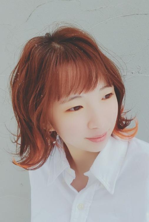 - #ぱっつんボブ#オレンジ#ダブルカラー#エンドカラー#ボブ